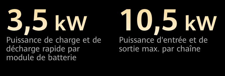 La gestion indépendante au niveau du module permet une charge et une décharge rapides à 3,5 kW pour chaque module de batterie et une puissance d'entrée et de sortie maximale de 10,5 kW pour chaque système de stockage d'énergie.